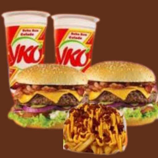2 X-Tudo + 2 Yko + Batata com Calabresa: